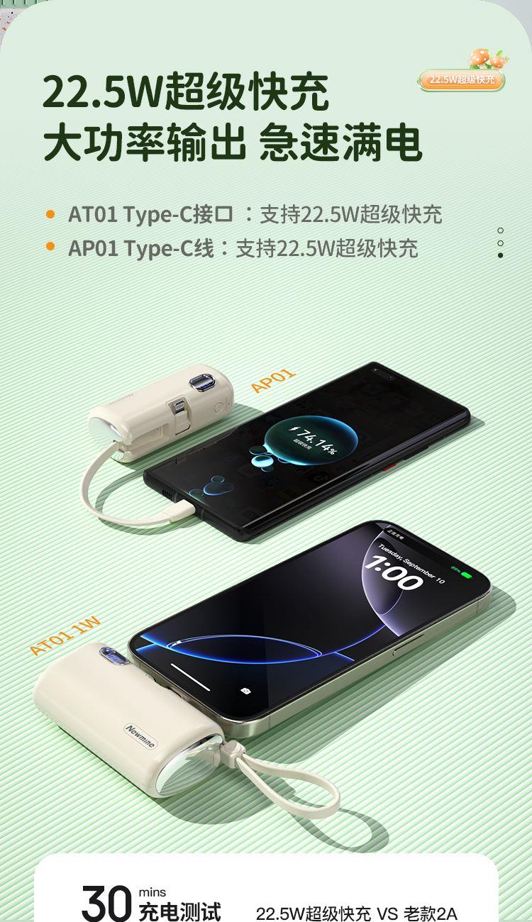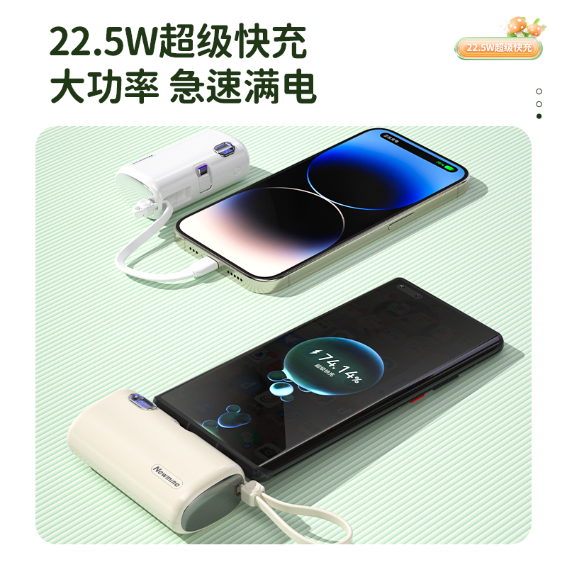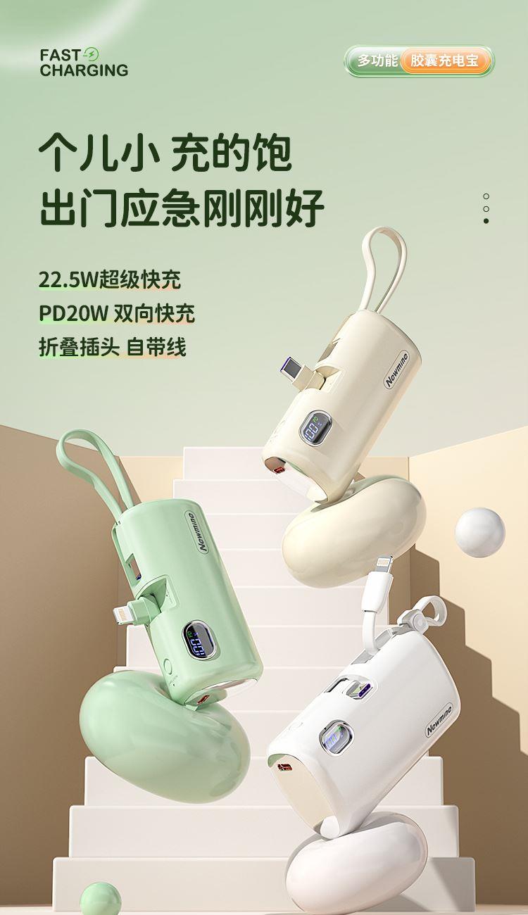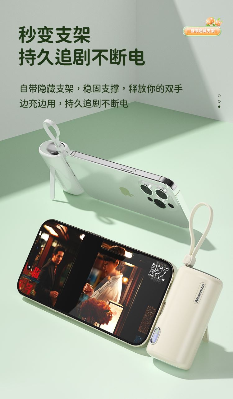 22.5W超級(jí)快充,蘋(píng)果/Type-c通用膠囊充電寶。帶手機(jī)支架。