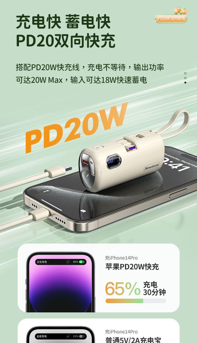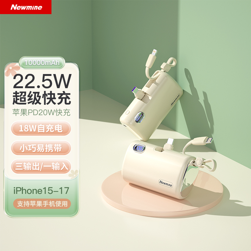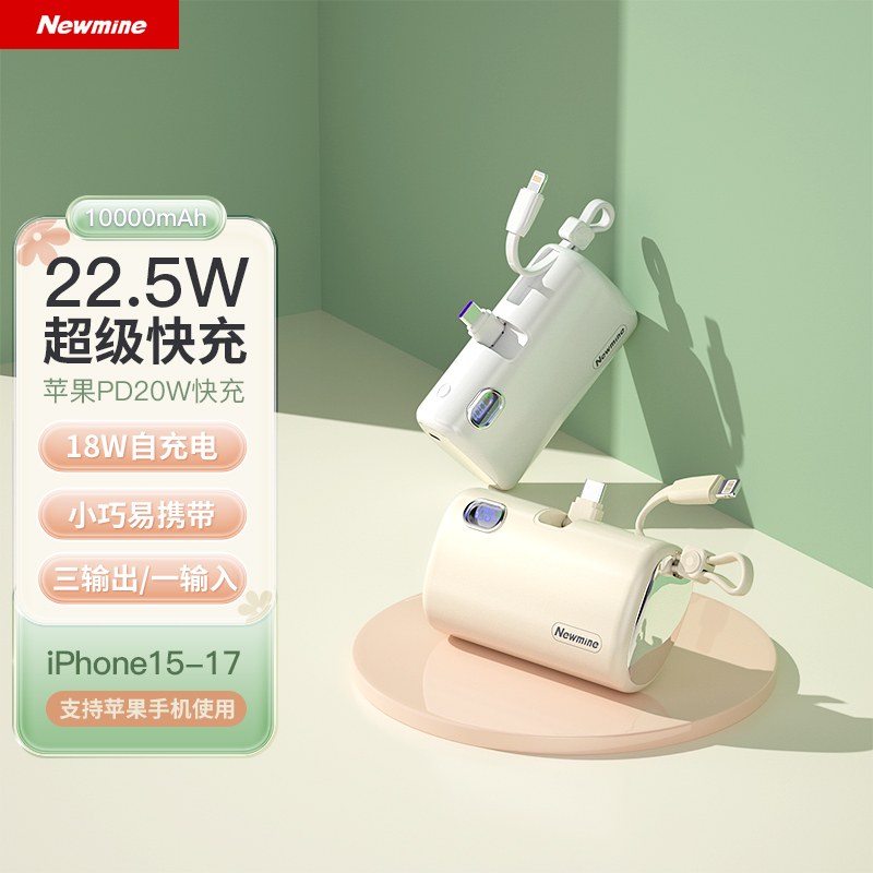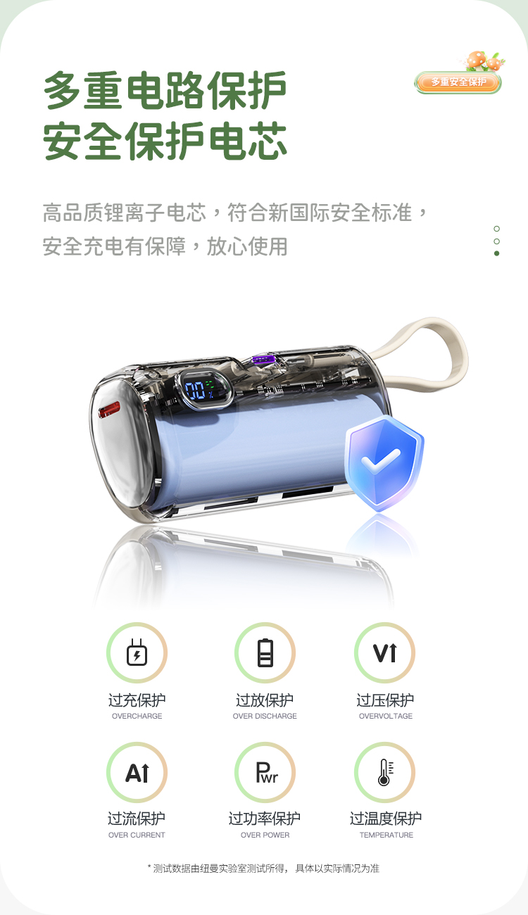 22.5W超級(jí)快充,蘋(píng)果/Type-c通用膠囊充電寶。帶手機(jī)支架。