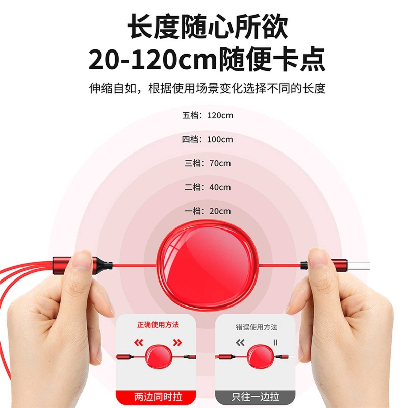 長(zhǎng) 度:120cm 材 質(zhì):鋁合金+ABS+TPE 顏 色:紅 黑 綠 白 藍(lán) 接 口:蘋果接口 安卓接口 Type-c接口 功 能:充電 輸出電流:5A 產(chǎn)品凈重:60g