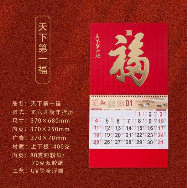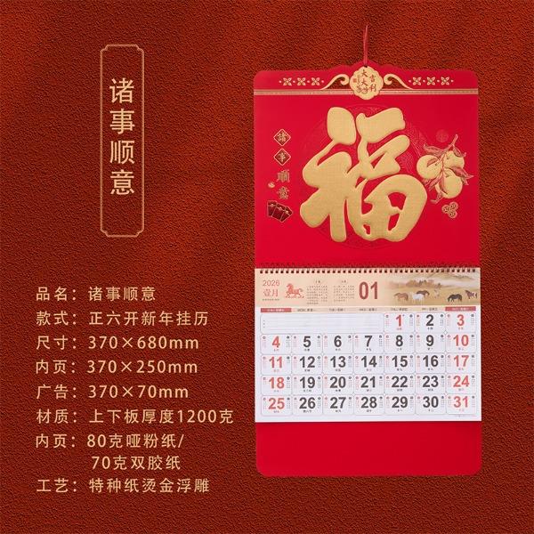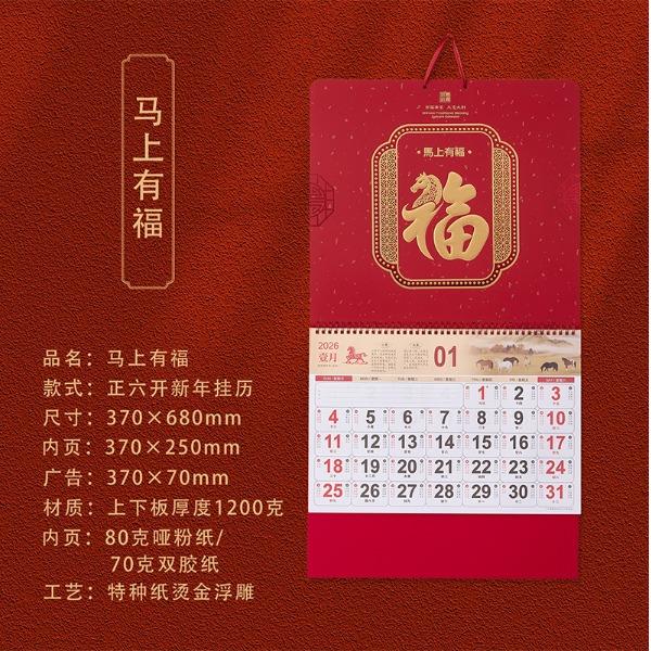 一輩子:2026馬年新款福牌掛歷浮雕吊牌撕歷月歷燙金