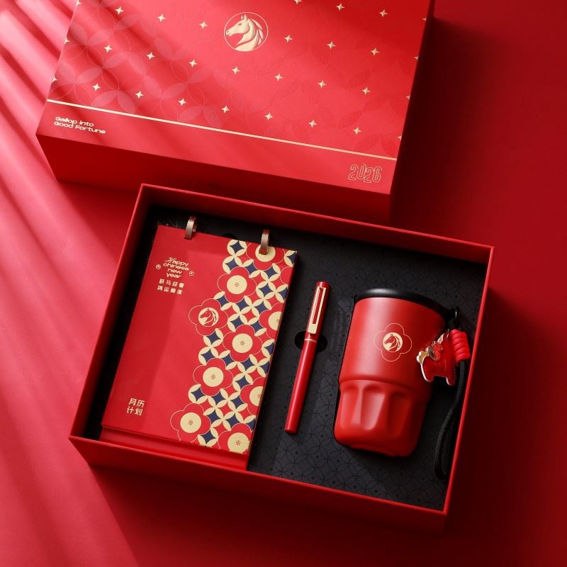 新年臺歷 204x130mm 銅板紙/印刷/燙金 新年紅包 100x180x15mm(6個) 珠光紙 簽字筆 140*11mm(0.7mm) 金屬/進口油墨 保溫杯 85x153mm(400ml) 內(nèi)膽316不銹鋼