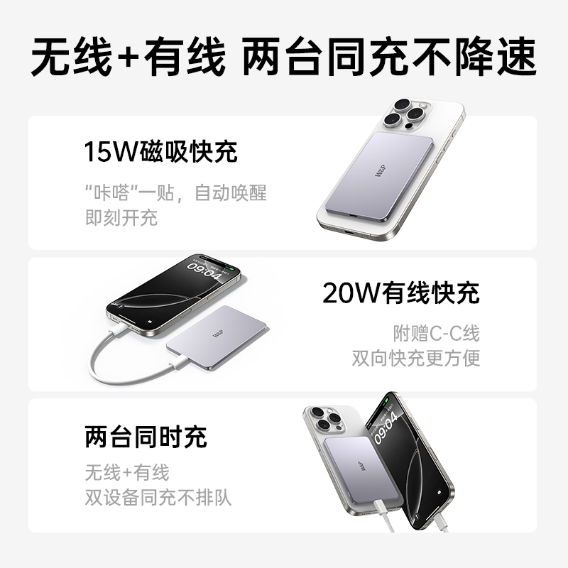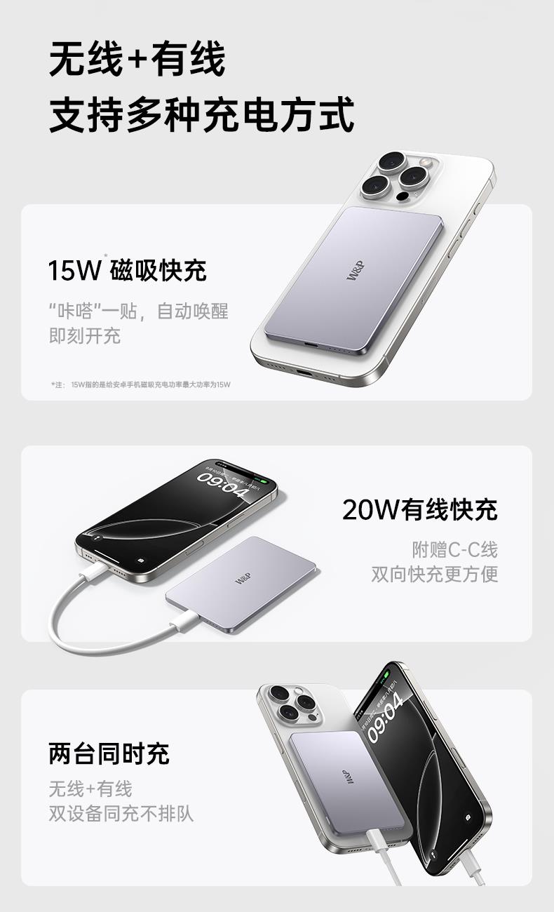W&P出街寶5千毫安磁吸移動電源C14鈦空紫 禮品已成功加入PPT!