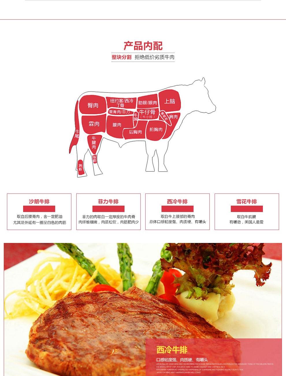 內(nèi)配: 西冷牛排180g/袋*1袋 嫩肩牛排150g/袋*4袋 贈(zèng)品:醬料包、黃油、保溫冰袋